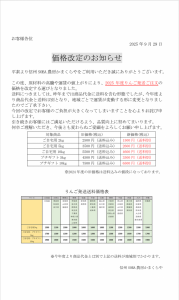 この度、原材料の高騰や運賃の値上がりにより、2025 年度りんご発送ご注文の価格を改定する運びとなりました。 送料につきましては、昨年までは商品代金に送料を含む形態でしたが、今年度より商品代金と送料は別となり、地域ごとで運賃が変動する形に変更させていただきます。